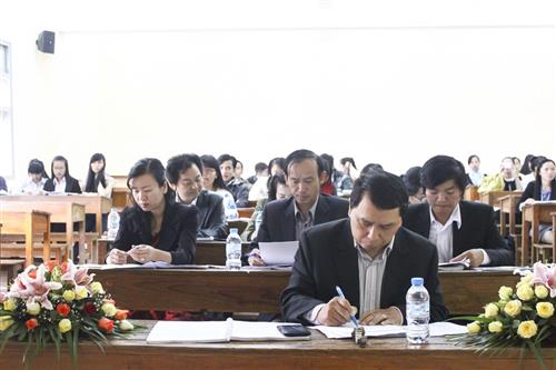 Tham gia Hội nghị có: PGS.TS. Nguyễn Văn Kết – Phó Hiệu trưởng; TS. Trịnh Thị Tú Anh – Trưởng Phòng QLKH-HTQT; ThS. Hoàng Đức Lâm – Chủ tịch Công đoàn; ThS. Nguyễn Văn Hùng – Bí thư Đoàn trường; các giảng viên và gần 200 sinh viên.