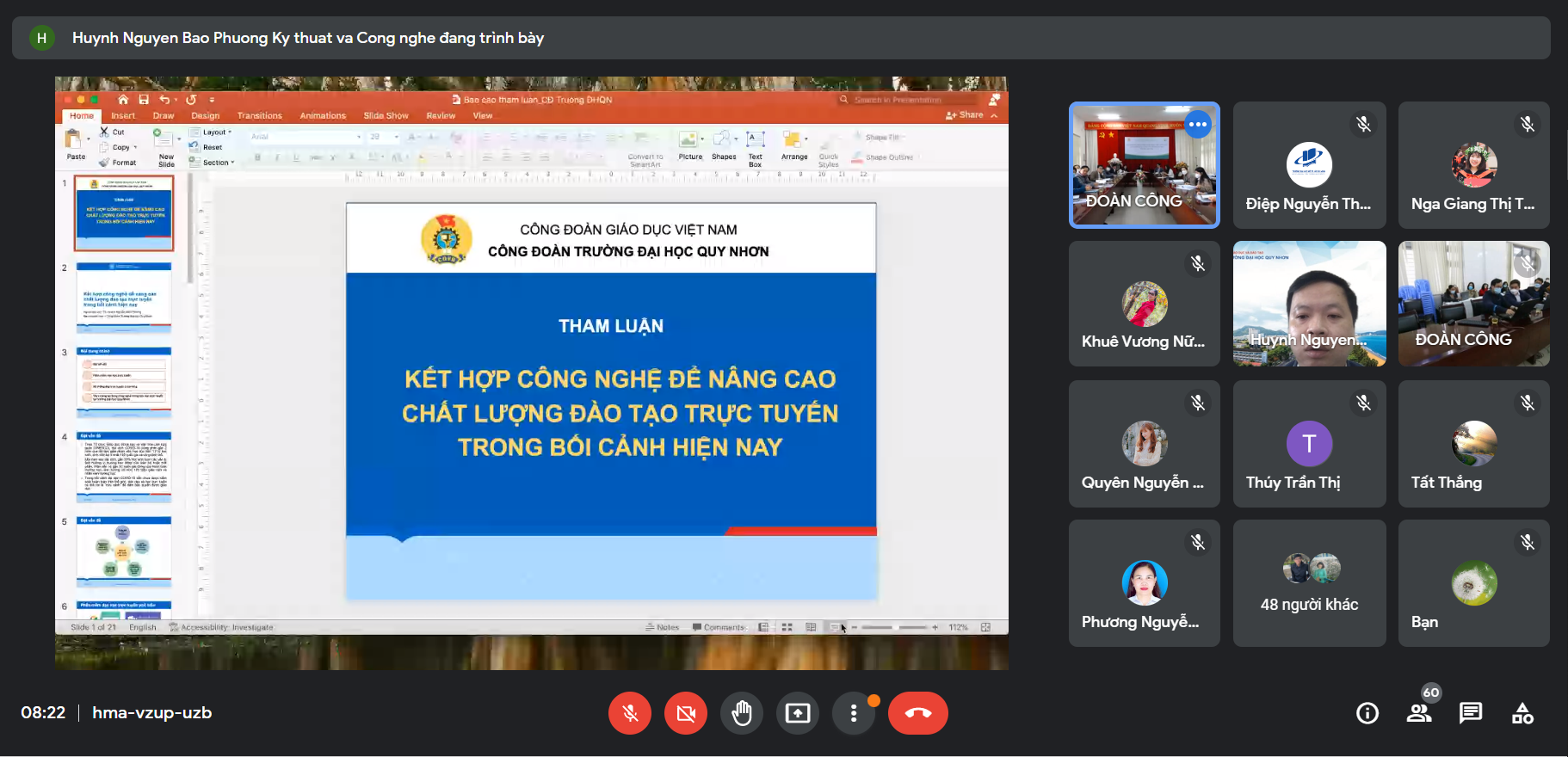 The workshop received a total of 18 presentations with many perspectives, raised many problems and provided solutions to make the application of technology in improving the quality of teaching and learning at universities more practical and effective. Among them, 7 presentations were directly reported at the workshop along with practical and useful discussions and sharing on issues such as: Utilising technology to improve the quality of online teaching in the context of current situation (Trade Union of Quy Nhon University), using smart bulletin boards to optimise multi-dimensional interaction when teaching face to face (Faculty of Foreign Languages, Dalat University), application of information technology in teaching Chinese to students majoring in Chinese Studies (Faculty of Literature and History, Dalat University), IMINDMAD application in online teaching of History of the Communist Party of Vietnam (Trade Union of Division of Political Theory – Education, Dalat University), etc.