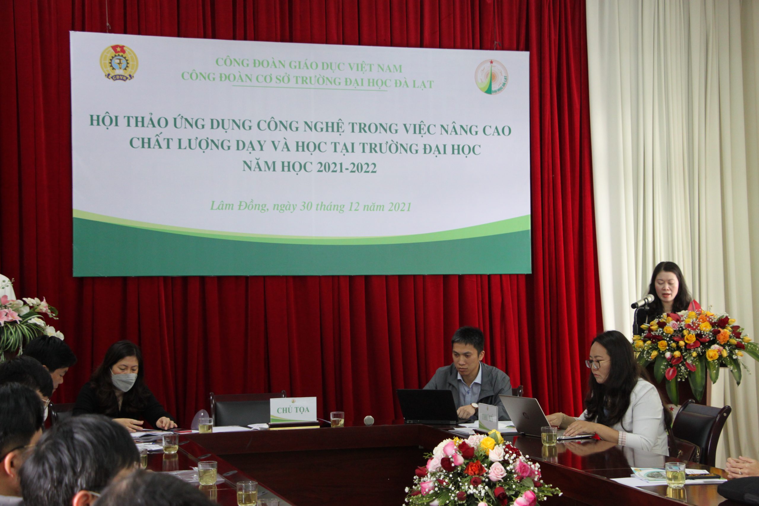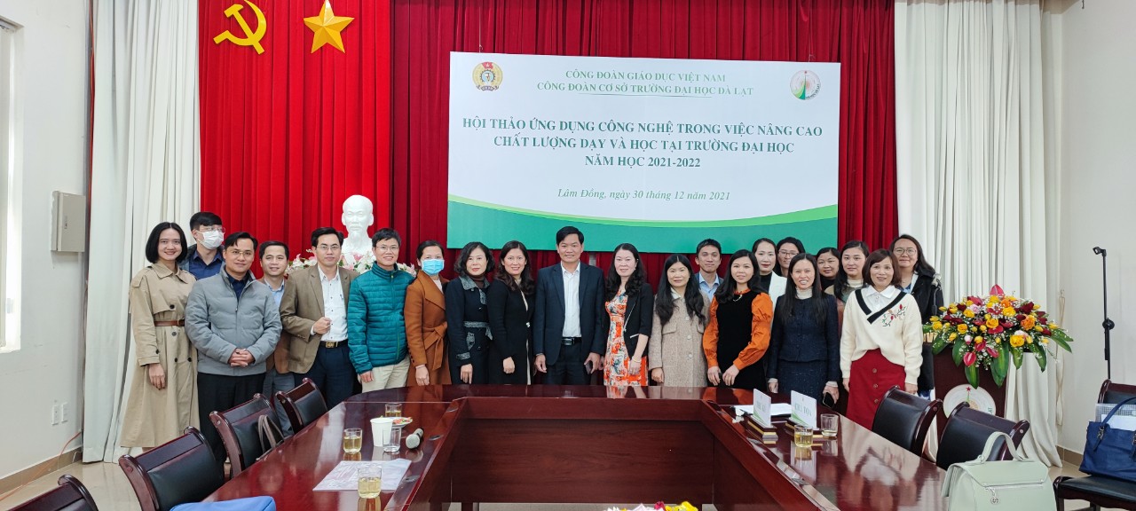 On the basis of the missions of the school year 2021-2022, in order to well implement the “Innovation and creativity in teaching and learning” emulation movement, on the morning of December 30, 2021, the grassroots Trade Union of Dalat University organised the workshop on application of technology in improving the quality of teaching and learning at universities for the school year 2021-2022 in the form of face-to-face and online meeting.