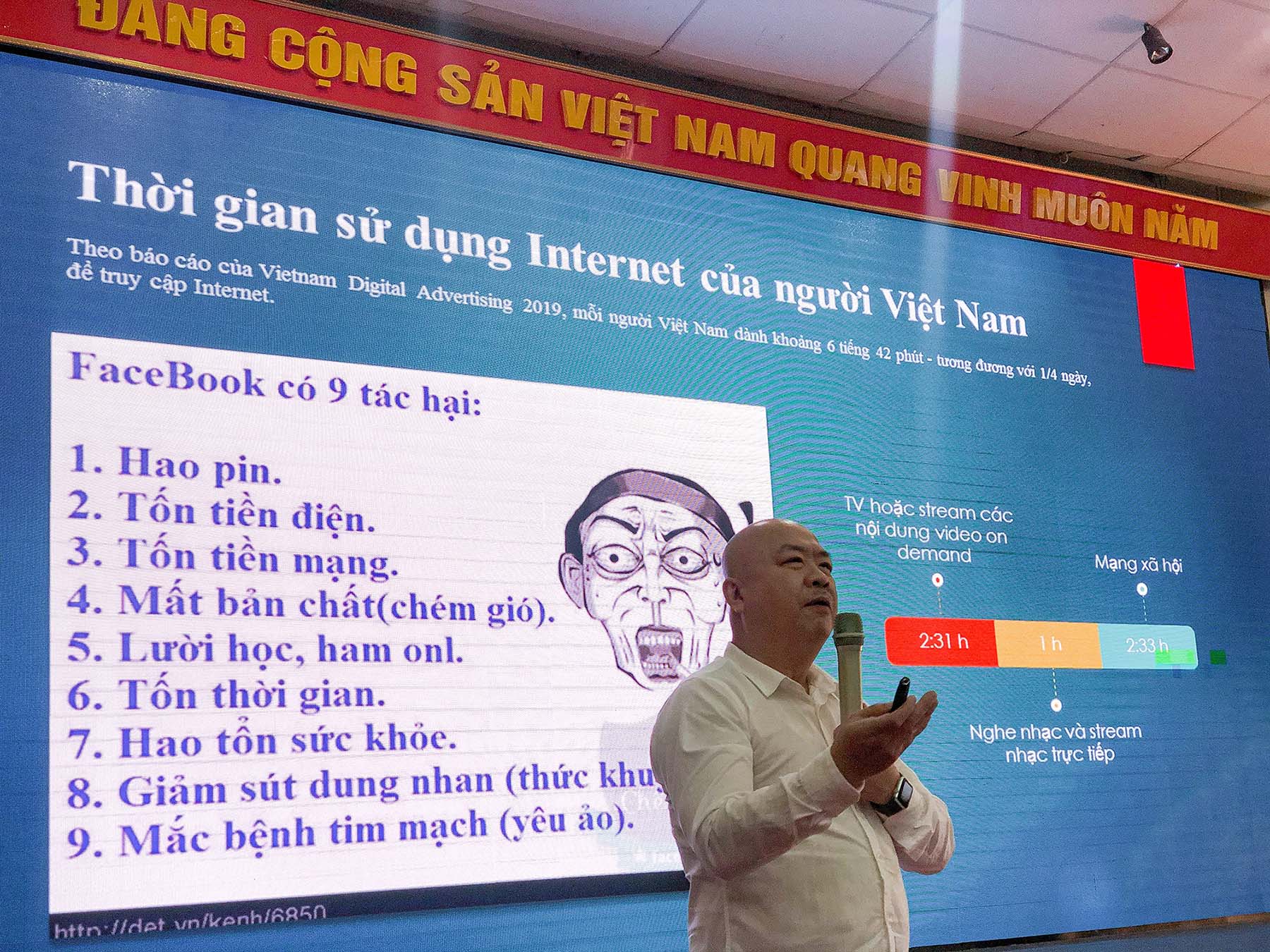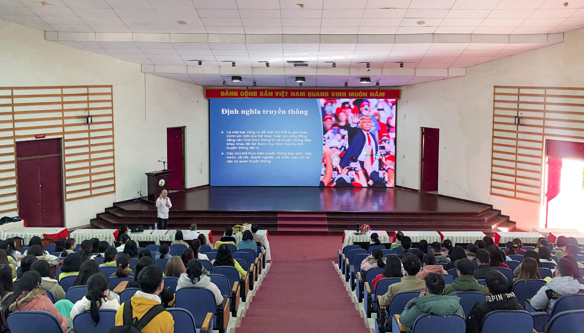 At the seminar, speaker-journalist Le Thanh Phong presented issues related to the purpose of using the internet and social media of Vietnamese people. In particular, he focused on presenting the characteristics, classification and identification of fake news in newspapers and social networks – a problem that directly affects students. At the same time, speaker – journalist Le Thanh Phong shared with students his experiences in managing, selecting and mastering information to be able to access the most accurate and useful information.