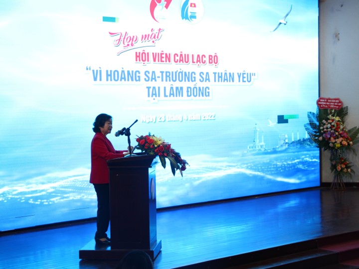 Speaking at the meeting, Ms. Truong My Hoa said: After 8 years of establishment and operation, the club “For the beloved Hoang Sa – Truong Sa” has continuously grown with many activities towards the sea and islands of Vietnam, contributing to officers, soldiers and fishermen who are working day and night by the sea to preserve the sovereignty of the sea and islands of the homeland. Currently, the club has 135 collective members with 32 overseas units and 2,997 individual members. In which, in Lam Dong province, there are 4 collective members and 95 individual members. Ms. Truong My Hoa shared: Vu A Dinh Scholarship Fund was established in 1999 with the goal of helping students from ethnic minorities in mountainous areas and islands; children of the navy, coast guard, border guard, etc. to overcome difficulties and study well; contributing to building facilities to serve the cause of education in order to implement the policy of great national unity of the Party and the State.