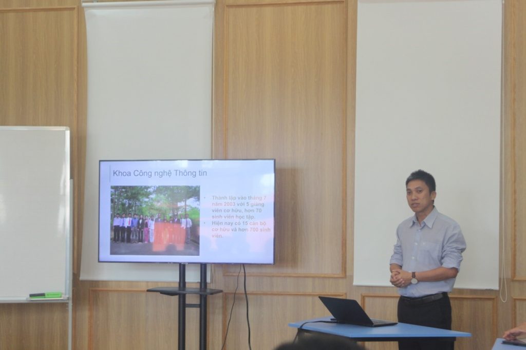 From the general introduction about the Faculty of Information Technology and the educational programme in information technology of Dalat University presented by Dr. Tran Ngo Nhu Khanh (Dean of the Faculty of Information Technology), Mr. Le Chan Nhan gave sincere and frank comments about the IT educational programme of the University, as well as suggested directions to adjust and improve to meet the actual requirements of technology companies in the world. In addition, engineer Le Chan Nhan also shared about how to apply artificial intelligence to real life and the development potential of this industry in the future, thereby, showing ways and directions for development that lecturers and students of Dalat University can research and apply to adapt to Industry 4.0.