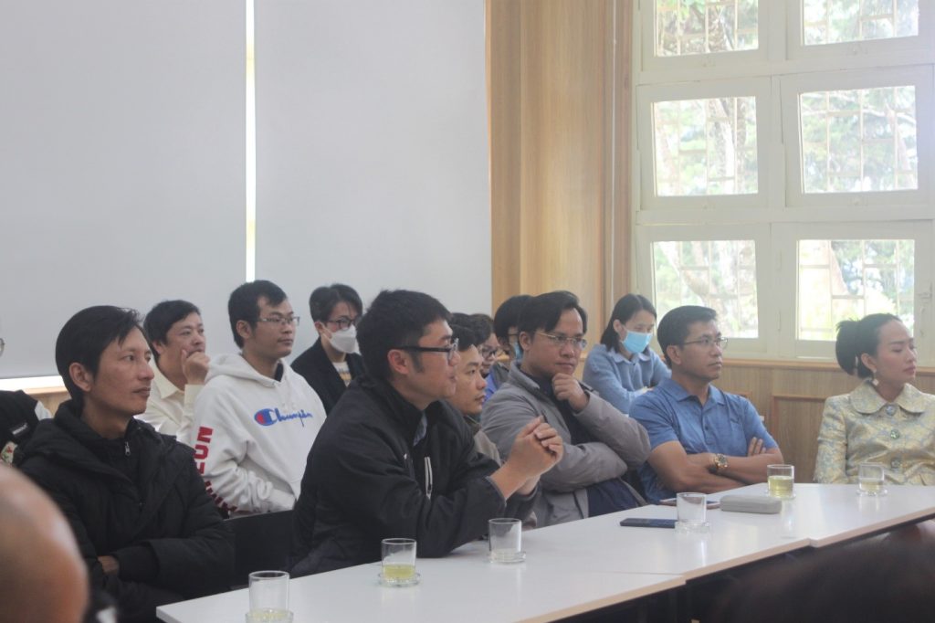 The seminar was attended by Mr. Tran Duc Trung – Standing Deputy Secretary of Lam Dong Provincial HCM Communist Youth Union; Dr. Le Minh Chien – Secretary of the Party Committee, President of Dalat University, Mr. Tran Thong (MSc.) – Vice President of Dalat University; along with leaders and lecturers of AIC-DLU, Faculty of Mathematics and Computer Science, Faculty of Information Technology, Faculty of Physics and Nuclear Engineering, and students of Dalat University.