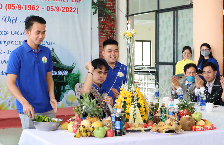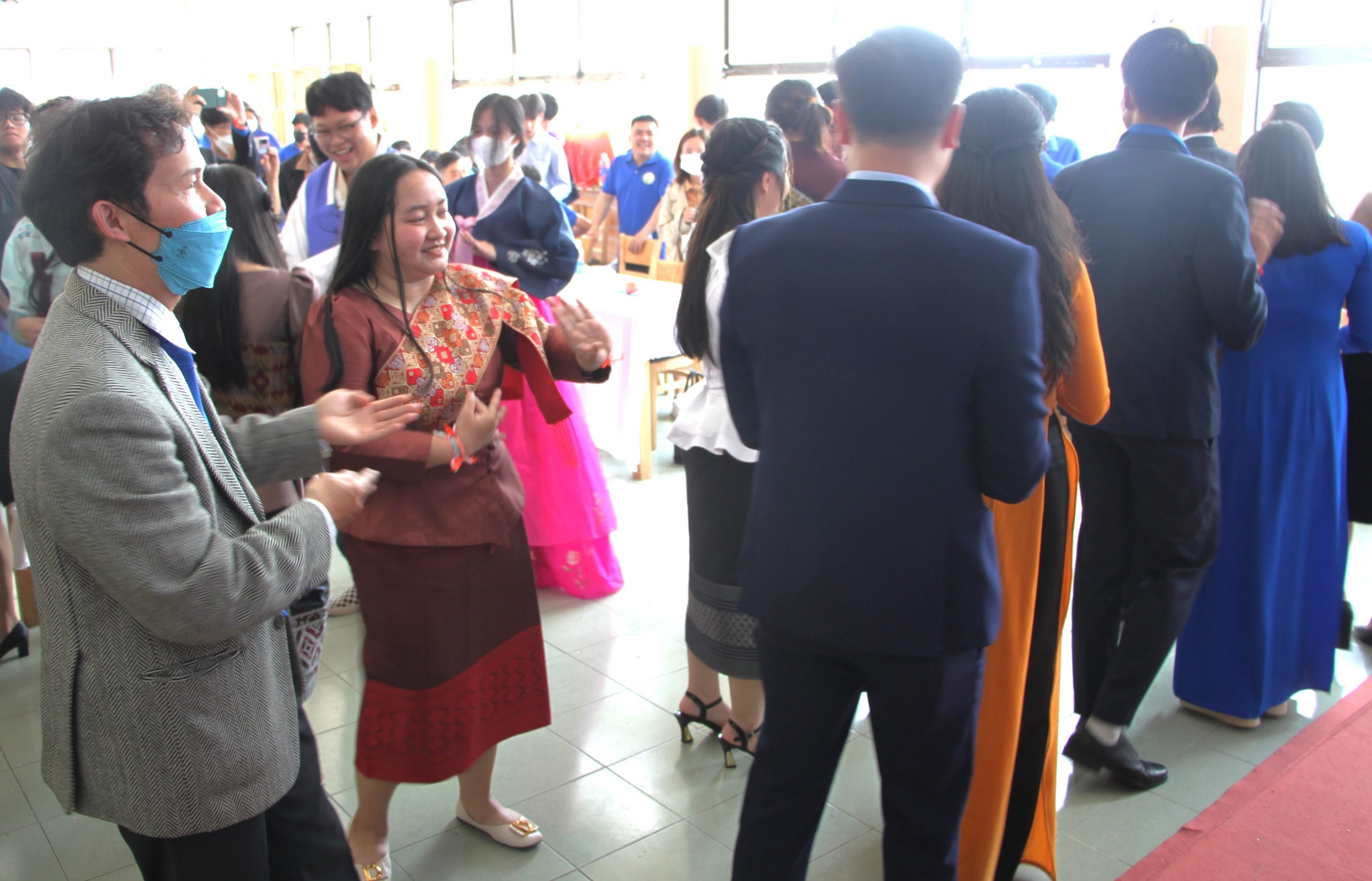 At the programme, the delegates and Lao students attended the traditional rituals of Bunpimay such as Baci ceremony (tying strings around the wrist), splashing water to wish for good luck in the new year and participating in the traditional Lam Vong dance. In the afternoon of the same day, the University also organised sports matches, Vietnamese and Lao folk games for Lao students and Vietnamese students, thereby helping them have more opportunities to interact and learn about the culture, people, traditional customs of the two ethnic groups.