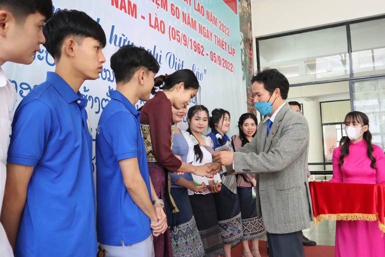 The programme was attended by Ms. Tran Diep My Dung – Deputy Secretary of Lam Dong Provincial HCM Communist Youth Union; Mr. Nguyen Ban – Chairman of The Vietnam-Laos Friendship Association of Lam Dong Province; Comrades in the Committees of Lam Dong Provincial HCM Communist Youth Union; Assoc. Prof. Dr. Nguyen Tat Thang – Party member, Vice President of Dalat University, and representatives of departments, unions, faculties, Executive Committee of HCM Communist Youth Union – Vietnam National Union of Students of Dalat University, lecturers, representatives of Vietnamese students and especially 24 Lao students studying at the University.