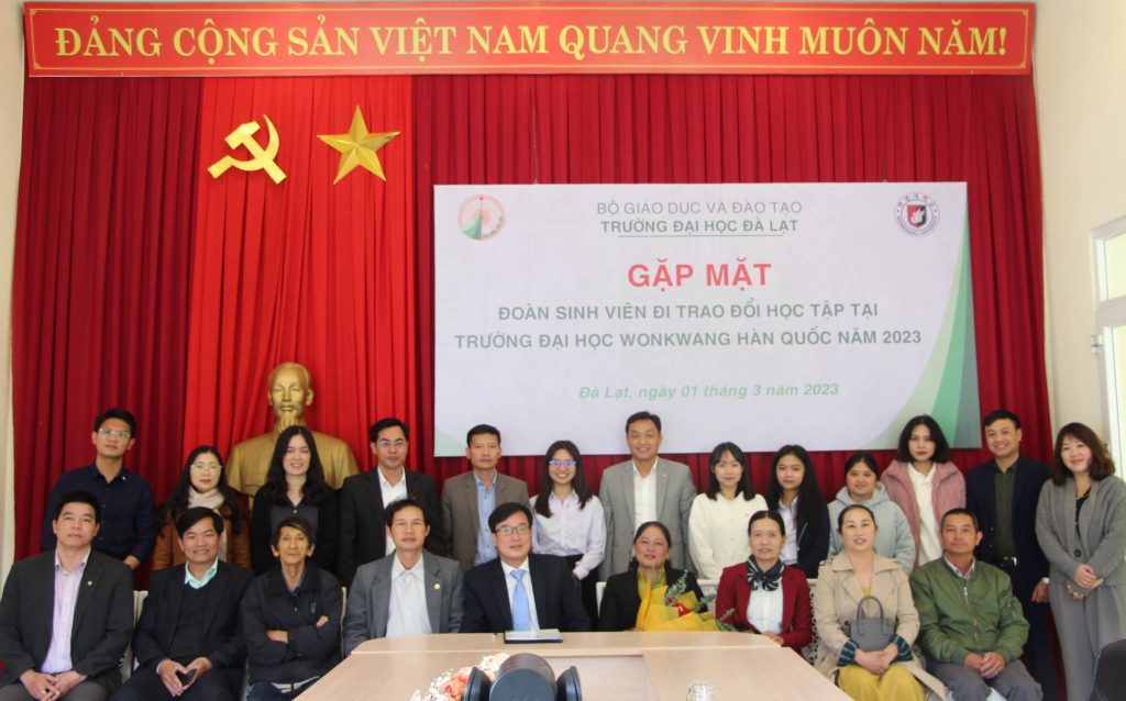 Sáng ngày 01/03/2023, tại phòng họp A1, Trường Đại học Đà Lạt tổ chức gặp mặt 35 sinh viên của Trường chuẩn bị lên đường đi trao đổi học tập tại Trường Đại học Wonkwang, Hàn Quốc theo hình thực trực tiếp kết hợp trực tuyến.