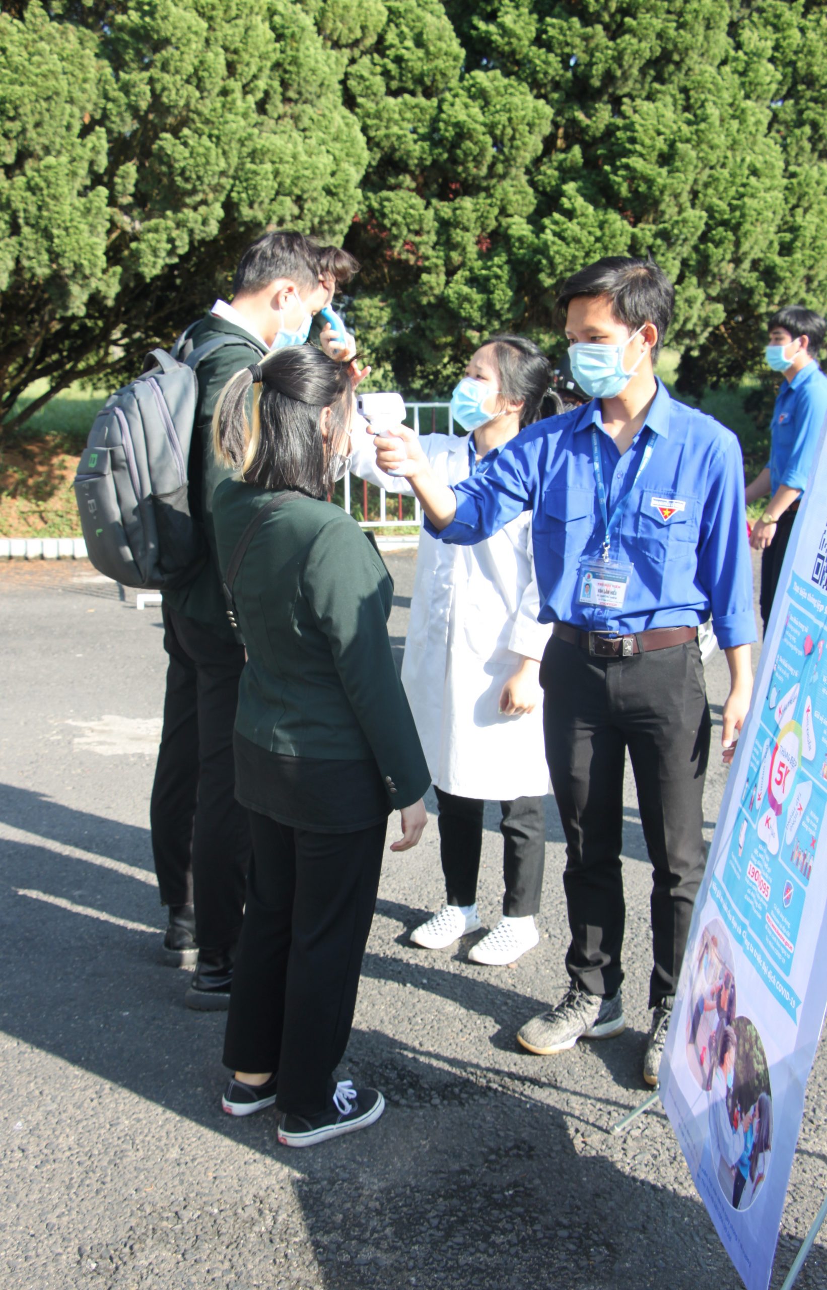 Thực hiện đo nhiệt độ ngay tại Cổng ra vào của Trường