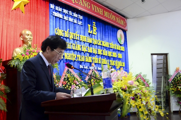 Phát biểu chúc mừng tại buổi Lễ, Thứ trưởng Bộ Giáo dục và Đào tạo Phạm Mạnh Hùng ghi nhận và đánh giá cao những đóng góp của tập thể lãnh đạo, cán bộ và sinh viên, học viên trường Đại học Đà Lạt cho sự nghiệp giáo dục – đào tạo của nước nhà, đặc biệt là đào tạo đội ngũ nguồn nhân lực trình độ cao phục vụ sự nghiệp công nghiệp hóa, hiện đại hóa đất nước. Chúc mừng trường Đại học Đà Lạt được Bộ giao tuyển sinh và đào tạo 04 ngành tiến sĩ từ năm 2015, qua đó khẳng định vị thế là trường đại học hàng đầu trên địa bàn Tây Nguyên, tiến tới trở thành trường đại học trọng điểm quốc gia của đất nước.