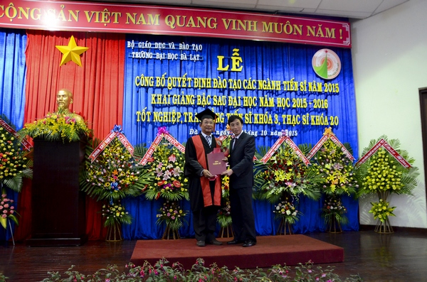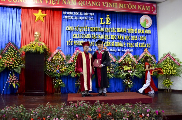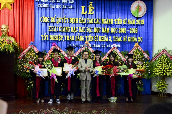 Trong không khí cả nước thi đua lập thành tích chào mừng kỷ niệm ngày Nhà giáo Việt Nam, ngày 31 tháng 10 năm 2015, Trường Đại học Đà Lạt đã long trọng tổ chức Lễ công bố Quyết định của Bộ Giáo dục và Đào tạo cho phép trường Đại học Đà Lạt đào tạo trình độ tiến sĩ 04 chuyên ngành: Vật lý kỹ thuật, Hóa phân tích, Sinh thái học, Lịch sử Việt Nam; khai giảng, tốt nghiệp các lớp Cao học và trao bằng Tiến sĩ năm 2015.