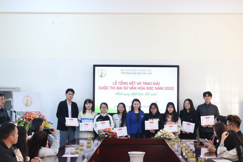 Vào chiều ngày 22/12/2022, Thư viện Trường Đại học Đà Lạt đã tổ chức Lễ Tổng kết và trao giải Cuộc thi Đại sứ Văn hóa đọc năm 2022 cho 32 sinh viên có kết quả cao trong vòng sơ khảo cấp trường và hai sinh viên đạt giải tại vòng chung kết toàn quốc.