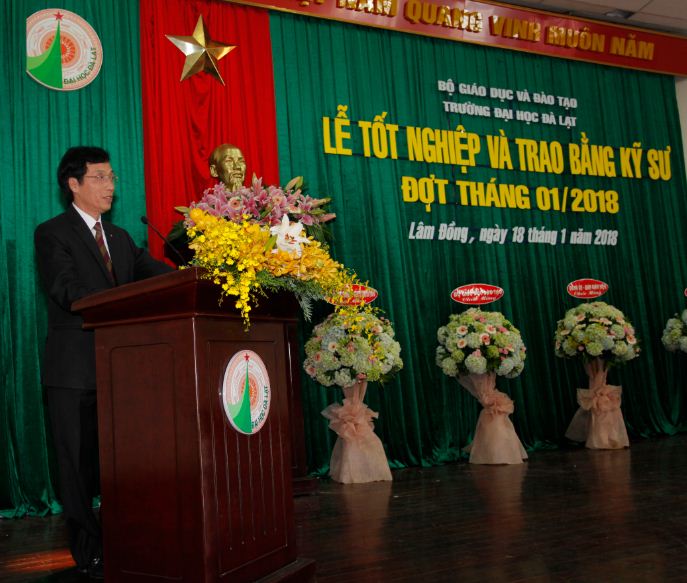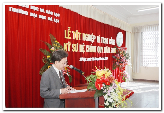 Phát biểu tại Lễ tốt nghiệp, PGS.TS. Nguyễn Đức Hòa, Bí thư Đảng ủy, Hiệu trưởng trường Đại học Đà Lạt đã nhiệt liệt chúc mừng thành quả của tập thể nhà trường, sự nỗ lực học tập không mệt mỏi của các tân kỹ sư.