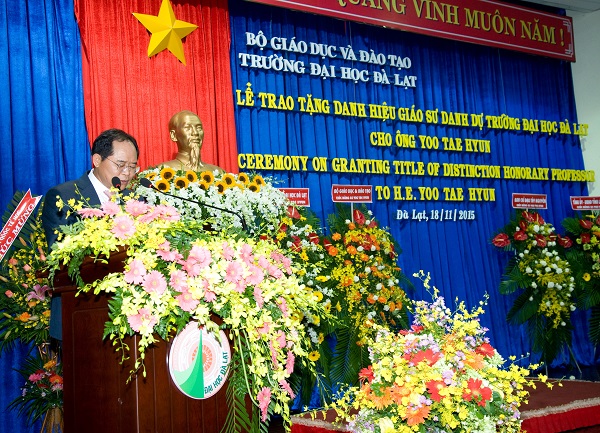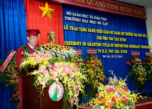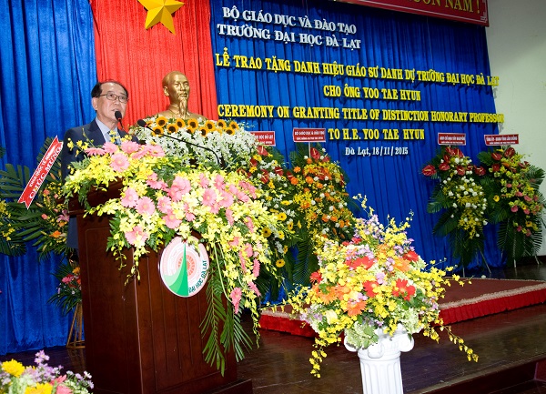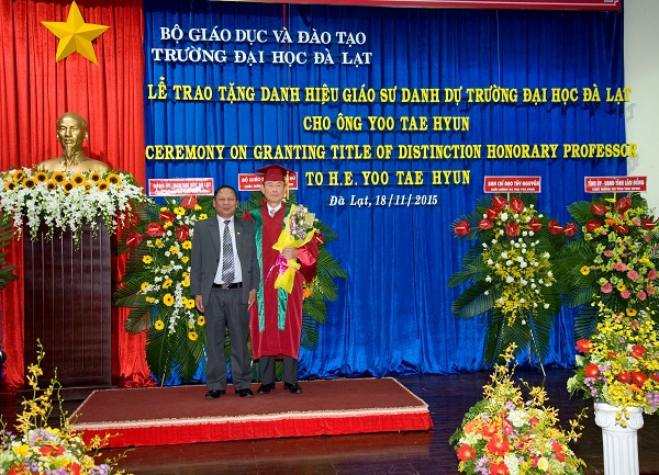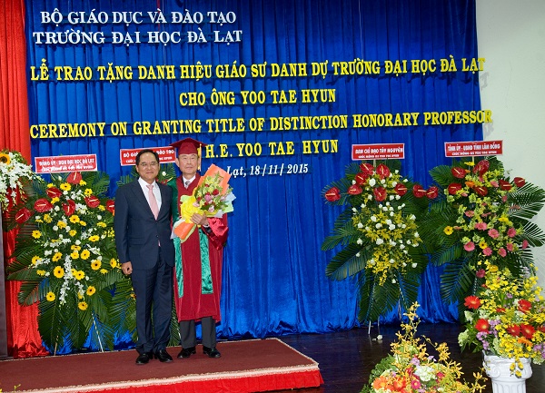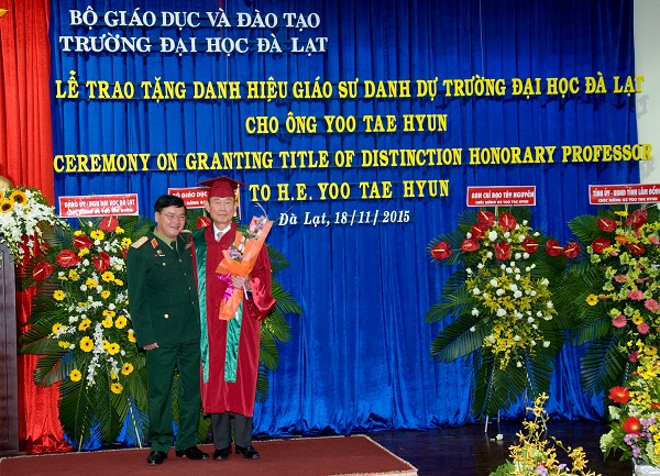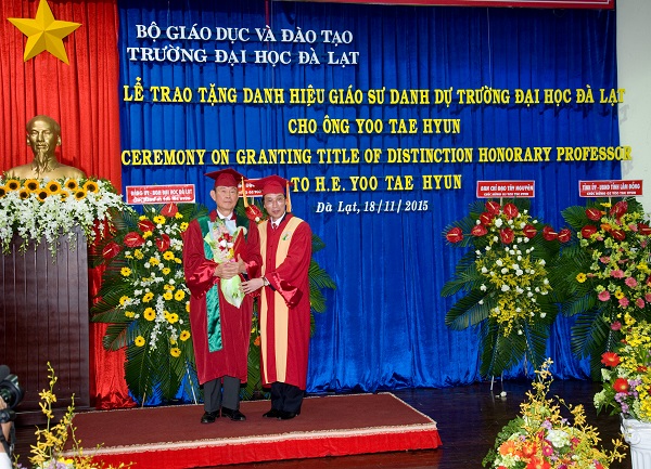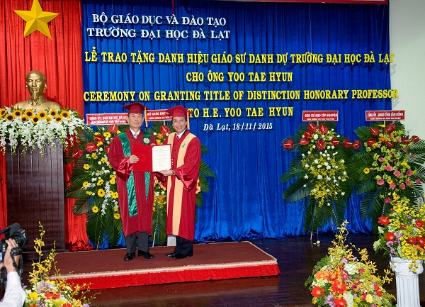 Trong không khí cả nước thi đua lập thành tích chào mừng kỷ niệm ngày Nhà giáo Việt Nam 20-11, Trường Đại học Đà Lạt đã long trọng tổ chức Lễ Trao tặng Danh hiệu Giáo sư Danh dự cho Ông Yoo Tae Hyun, Nguyên Đại sứ Đại Hàn Dân Quốc tại Việt Nam, giảng viên Khoa Quốc tế học – Trường Đại học Đà Lạt; Cố vấn Danh dự cho các mối quan hệ hợp tác giữa tỉnh Lâm Đồng và các đối tác Hàn Quốc.