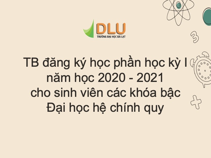 Căn cứ Kế hoạch giảng dạy năm học 2020 – 2021 đã duyệt, Trường Đại học Đà Lạt thông báo về việc tổ chức đăng ký học phần học kỳ I, năm học 2020 – 2021 như sau: