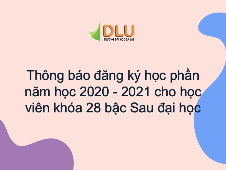 Căn cứ Kế hoạch giảng dạy năm học 2020-2021, Trường Đại học Đà Lạt thông báo số 1436/TB-ĐHĐL về việc tổ chức đăng ký học phần Sau đại học cho Khóa 28, năm học 2020-2021.