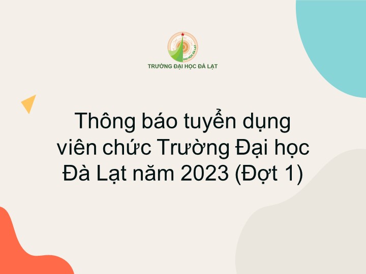 Thông báo tuyển dụng viên chức Trường Đại học Đà Lạt năm 2023 (Đợt 1) Tuyển dụng - Phòng tổ chức hành chính 2023-03-062023-03-08 628 Loading… Taking too long? Reload document | Open in new tab Loading… Taking too long? Reload document | Open in new tab