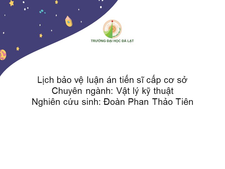 Trường Đại học Đà Lạt trân trọng thông báo về việc tổ chức bảo vệ luận án tiến sĩ cấp trường cho nghiên cứu sinh Huỳnh Phương Thảo.