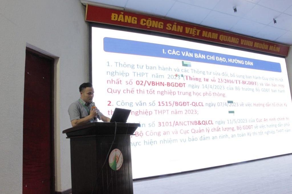 Tại Hội nghị tập huấn, TS. Trần Hữu Duy – Trưởng phòng QLĐT – đã chia sẻ những kinh nghiệm quý báu được tích lũy từ các đợt kiểm tra công tác coi thi THPT của những năm trước. ThS. Hoàng Minh Tiến – Phó Trưởng phòng QLĐT đã phổ biến Quy chế thi tốt nghiệp THPT năm 2023 và tập huấn nghiệp vụ kiểm tra coi thi kỳ thi tốt nghiệp THPT năm 2023; đồng thời giới thiệu sổ tay nghiệp vụ kiểm tra. Cũng tại chương trình, các viên chức, giảng viên đã trao đổi, thảo luận về những vấn đề liên quan đến nghiệp vụ công tác kiểm tra thi, chia sẻ các kinh nghiệm thực tế, đặc biệt kinh nghiệm trong công tác phối hợp với các điểm thi và cán bộ thanh tra, kiểm tra thi của các Sở Giáo dục và Đào tạo.