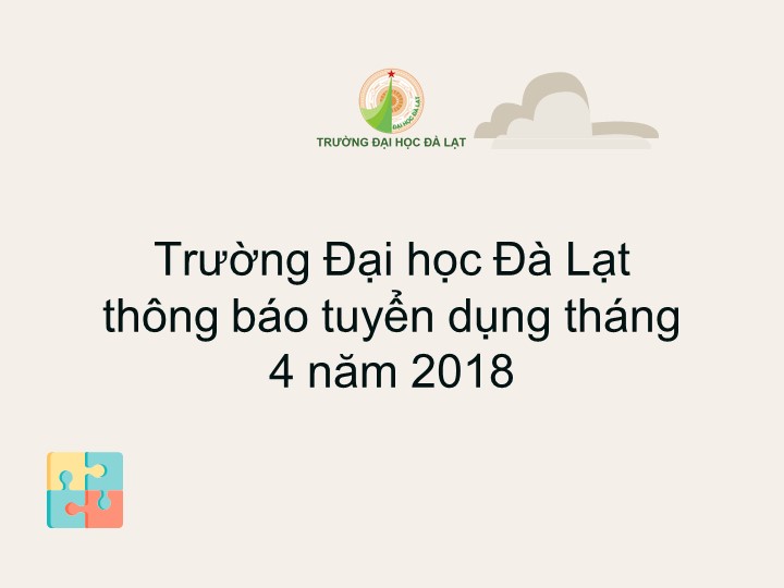 Trường Đại học Đà Lạt thông báo tuyển dụng nhân sự tháng 04 năm 2018 Thông báo tổ chức hành chính 2018-04-272021-07-14 467 Nhấn vào liên kết để xem: Loading… Taking too long? Reload document | Open in new tab Download