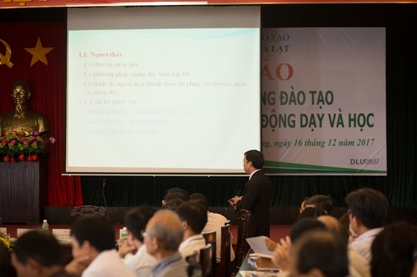 Thực hiện Nghị quyết số 29-NQ/TW của Ban chấp hành Trung ương Đảng khóa XI “Về đổi mới căn bản, toàn diện giáo dục và đào tạo, đáp ứng yêu cầu công nghiệp hóa, hiện đại hóa trong điều kiện kinh tế thị trường định hướng xã hội chủ nghĩa và hội nhập quốc tế“, ngày 16/12/2017 tại Nha Trang, Trường Đại học Đà Lạt đã tổ chức hội thảo với chủ đề“Nâng cao chất lượng đào tạo thông qua đổi mới hoạt động dạy và học”.
