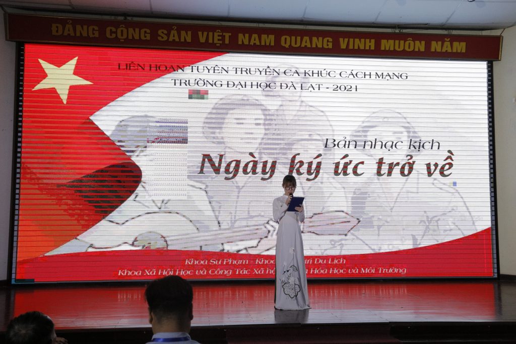 Nhằm giáo dục và bồi dưỡng tinh thần về lòng yêu nước, tự hào dân tộc của tuổi trẻ Đại học Đà Lạt ngày hôm nay; góp phần nâng cao đời sống văn hóa tinh thần cho đoàn viên thanh niên, tuyên truyền, giới thiệu các ca khúc Cách mạng, ca ngợi tình yêu quê hương đất nước, ca ngợi Trường Đại học Đà Lạt đến đoàn viên, hội viên, sinh viên nhà trường, tối ngày 27 tháng 4 năm 2021 Tuổi trẻ Đại học tổ chức Liên hoan Tuyên truyền ca khúc Cách mạng Trường Đại học Đà Lạt năm 2021 – Những khoảnh khắc tạc vào năm tháng, với sự đồng hành của Công ty Cổ phần Vàng bạc đá quý Phú Nhuận, Chi nhánh Tây nguyên – Nam Trung bộ. Đến tham dự với đêm Liên hoan có sự hiện diện của các vị khách mời: