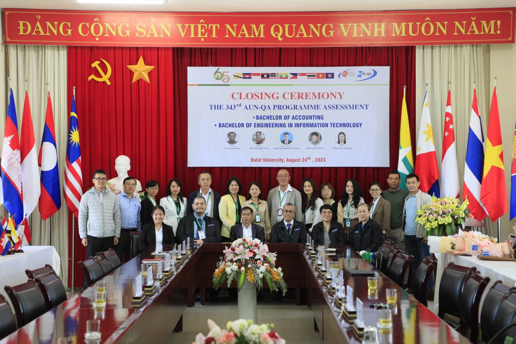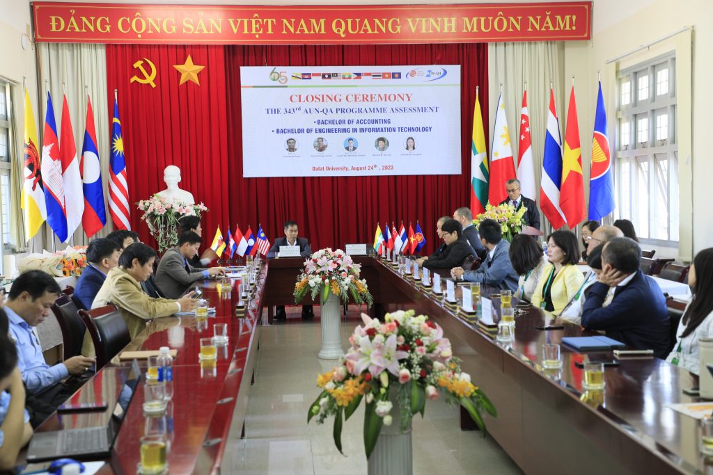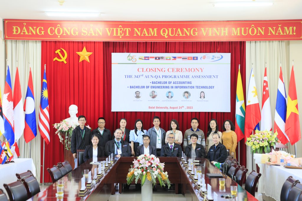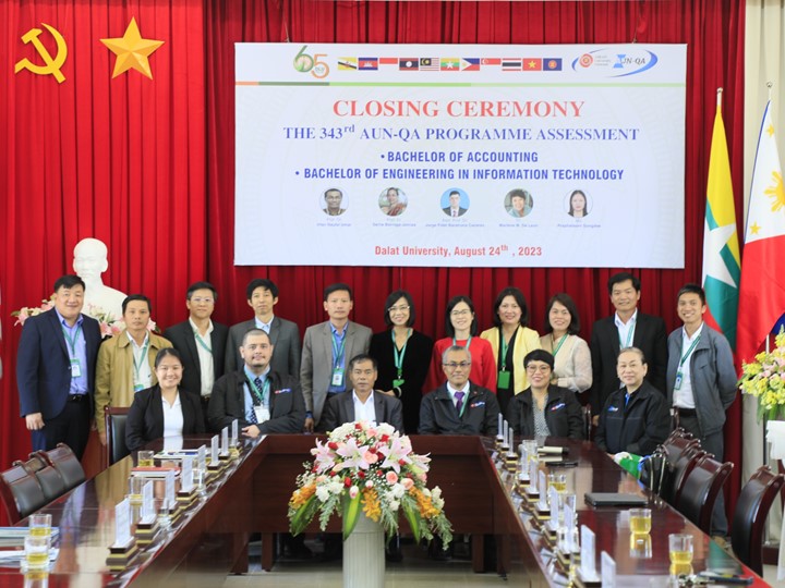 Sau 03 ngày làm việc khẩn trương, nghiêm túc và hiệu quả, vào sáng ngày 24/08/2023, Trường Đại học Đà Lạt đã tổ chức Lễ Bế mạc Đánh giá ngoài chất lượng các chương trình đào tạo theo Tiêu chuẩn AUN-QA (ASEAN University Network Quality Assurance) lần thứ 343 cho 02 chương trình đào tạo (CTĐT) của Trường Đại học Đà Lạt, bao gồm: Kế toán và Công nghệ thông tin.