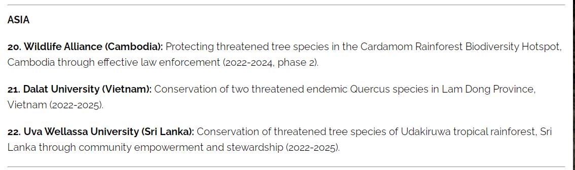 Qua các vòng xét duyệt nghiêm ngặt, đã có 26 dự án được lựa chọn tài trợ trong tổng số gần 100 dự án được đề xuất từ 50 quốc gia khác nhau trong năm 2022. Dự án của các nhà khoa học Trường Đại học Đà Lạt là một trong ba dự án thuộc khu vực Châu Á được Quỹ Franklinia lựa chọn tài trợ.