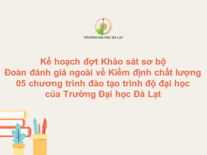 Kế hoạch đợt Khảo sát sơ bộ – Đoàn đánh giá ngoài về Kiểm định chất lượng 05 chương trình đào tạo trình độ đại học của Trường Đại học Đà Lạt.