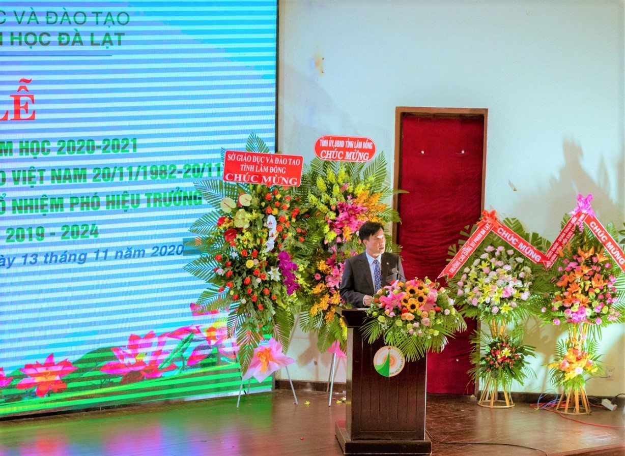On the occasion of the 38th Vietnamese Teachers’ Day (November 20, 1982 – November 20, 2020), Dalat University also held an honorable ceremony for those working in the Education industry. Speaking at the ceremony, Dr. Le Minh Chien – Secretary of the Party Committee, President of Dalat University, on behalf of the leaders of the University, sent to all lecturers the best wishes and expressed his belief that, in the coming time, the lecturers will continue to promote the spirit of dedication, solidarity, responsibility, use their potential and creativity to complete the assigned tasks, truly be a role model to students and contribute to the education industry in the country to fulfill their educational missions.
