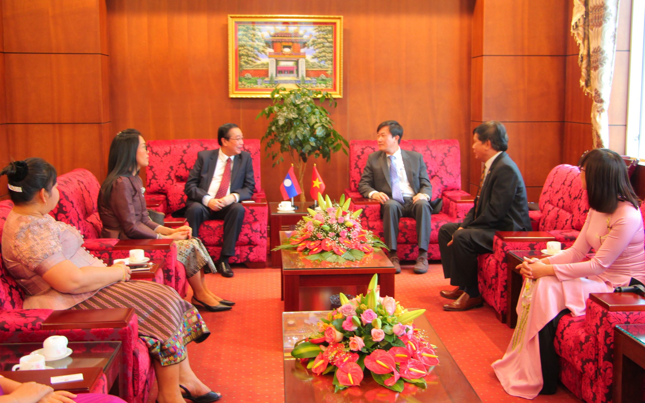 Before the official ceremony took place, Dr. Le Minh Chien – Secretary of the Party Committee, President of Dalat University had a meeting to greet Mr. Vanxay Xaysena – Deputy Consul General of Laos in Ho Chi Minh City and delegates.