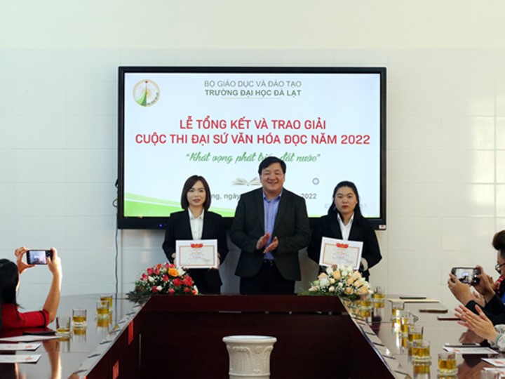 On the afternoon of December 22, 2022, Dalat University Central Library held the closing ceremony of the 2022 Reading Culture Ambassador Contest and awarded 32 students with high results in the school-level preliminary round and two students who won prizes in the national final round.