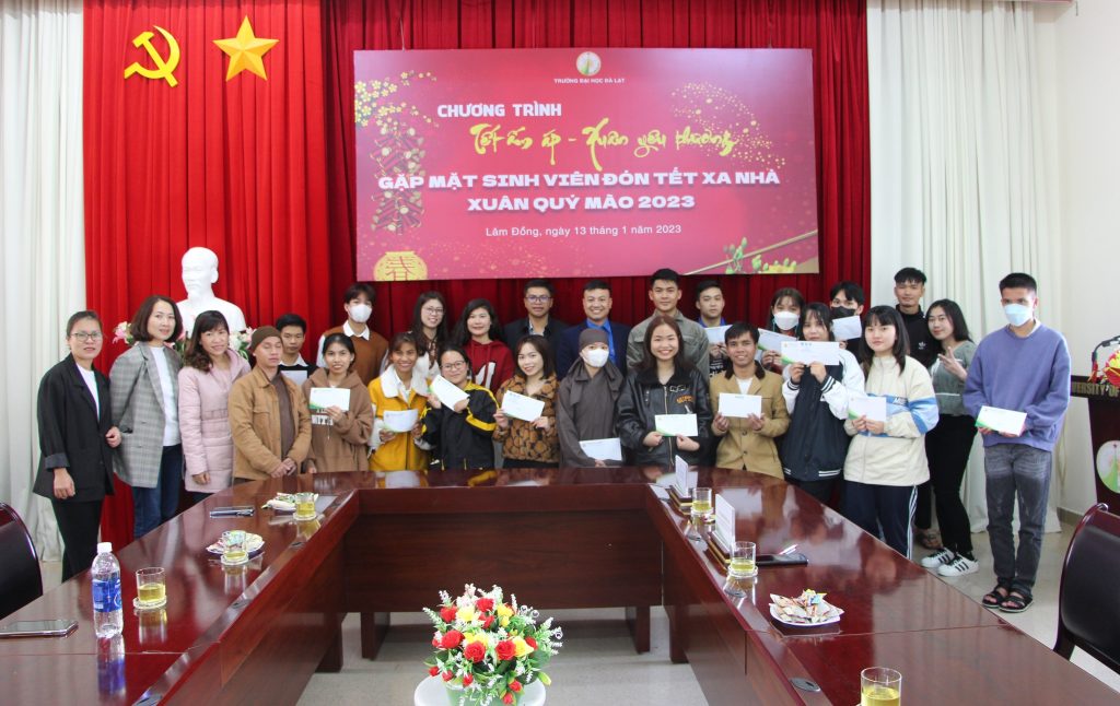 On the afternoon of January 13, Da Lat University held ta meeting to celebrate Lunar New Year and gave gifts to students who were far from home and could not return to their hometown to celebrate Tet.