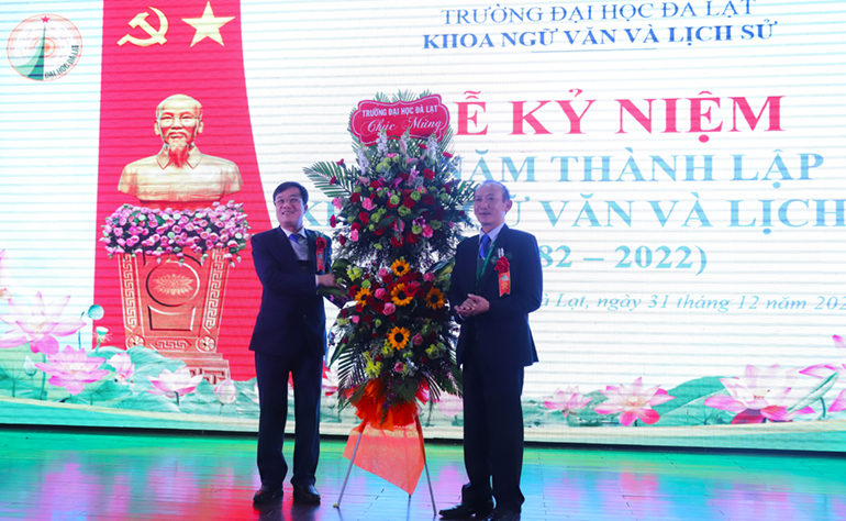 On the afternoon of December 31, 2022, the Dalat University Faculty of Literature and History solemnly held the 40th anniversary ceremony (1982 – 2022). Attending the ceremony were Dr. Le Minh Chien – Secretary of the Party Committee, President of Dalat University, along with the professors and associate professors from the North and the South, who were visiting lecturers at the Faculty, also attended the ceremony.