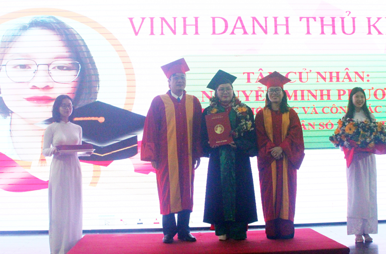 (Lam Dong online) – 101 new graduates received a bachelor’s degree in the part-time programme in Population and Development at the Faculty of Sociology and Social Work of Dalat University, in the afternoon of August 12.
