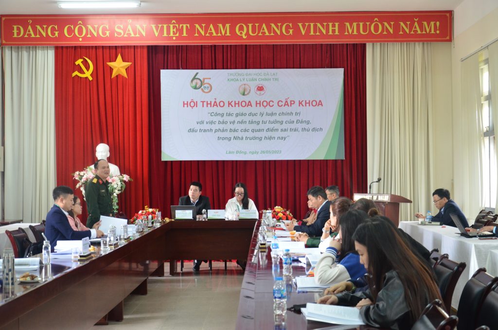 Kỷ niệm 205 năm Ngày sinh Các Mác (5/5/1818 – 5/5/2023), 133 năm Ngày sinh Chủ tịch Hồ Chí Minh (19/5/1890 – 19/5/2023), hướng tới chào mừng 65 năm Trường Đại học Đà Lạt hình thành và phát triển (1958 – 2023), sáng ngày 26/05/2023, Ban Tuyên giáo Đảng ủy phối hợp cùng Khoa Lý luận Chính trị, Trường Đại học Đà Lạt tổ chức thành công hội thảo khoa học “Công tác giáo dục lý luận chính trị với việc bảo vệ nền tảng tư tưởng của Đảng, đấu tranh phản bác các quan điểm sai trái, thù địch trong nhà trường hiện nay”.