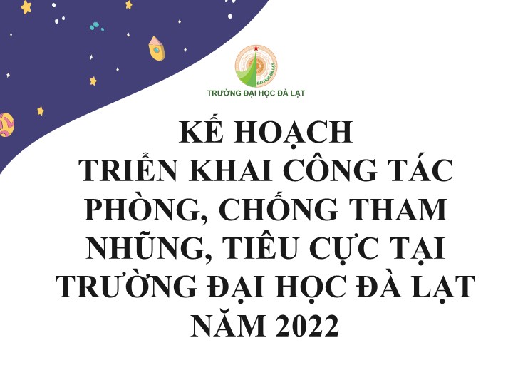 KẾ HOẠCH TRIỂN KHAI CÔNG TÁC PHÒNG, CHỐNG THAM NHŨNG, TIÊU CỰC TẠI TRƯỜNG ĐẠI HỌC ĐÀ LẠT NĂM 2022 Phòng Thanh tra Trường Đại học Đà Lạt 2022-02-102022-02-18 674 Loading… Taking too long? Reload document | Open in new tab