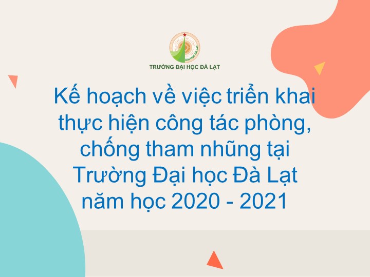 Kế hoạch số 03/KH-ĐHĐL ngày 04/01/2021 của Trường Đại học Đà Lạt về việc triển khai thực hiện công tác phòng, chống tham nhũng tại Trường Đại học Đà Lạt năm học 2020 – 2021