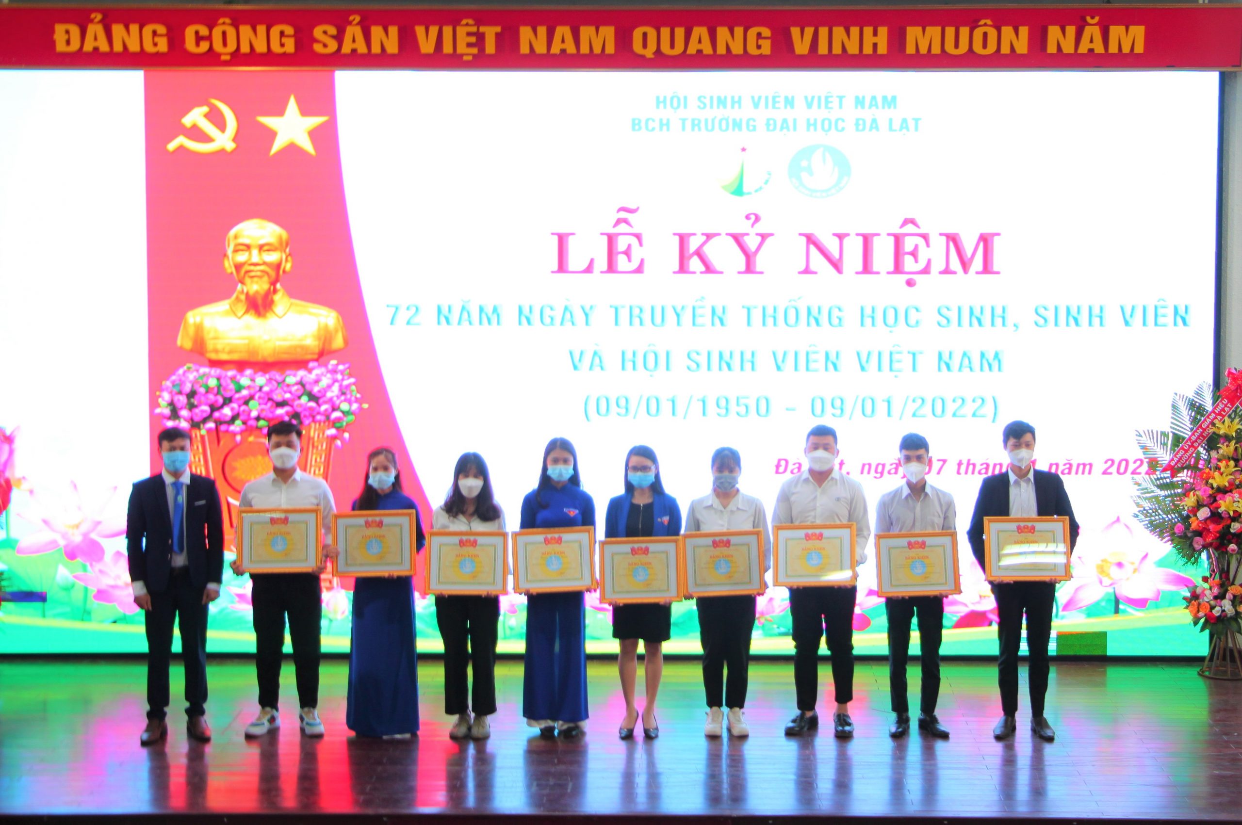 Trong dịp này, Công ty TNHH Finom đã trao 10 suất học bổng dành cho các sinh viên xuất sắc có hoàn cảnh khó khăn. Trường Đại học Đà Lạt đã có 05 tập thể và 15 cá nhân được nhận Bằng khen của Trung ương Hội Sinh viên Việt Nam vì đã có thành tích xuất sắc trong công tác Hội và phong trào sinh viên năm học 2020-2021. Đồng thời, Hội Sinh viên Trường Đại học Đà Lạt đã trao chứng nhận danh hiệu “Sinh viên 5 tốt” cấp trường cho 208 sinh viên; tặng giấy khen cho 108 sinh viên có thành tích xuất sắc trong công tác Hội năm học 2019-2020; tuyên dương 18 chiến sỹ tình nguyện tham gia phòng chống dịch Covid-19 tại TP. Hồ Chí Minh; trao giấy chứng nhận cho 17 sinh viên tích cực tham gia “Chiến dịch Tuần lễ sinh thái 2021” với chủ đề “Du lịch không rác và không gian sinh thái” do Hội Sinh viên Trường phối hợp với Trung tâm Phát triển Sáng kiến Cộng đồng và Môi trường (C&E) tổ chức.