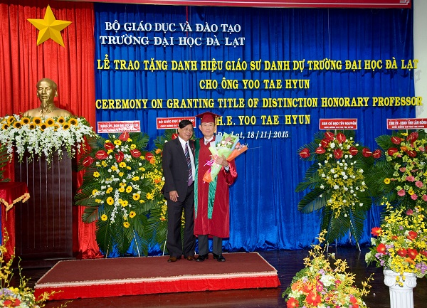 Trong không khí cả nước thi đua lập thành tích chào mừng kỷ niệm ngày Nhà giáo Việt Nam 20-11, Trường Đại học Đà Lạt đã long trọng tổ chức Lễ Trao tặng Danh hiệu Giáo sư Danh dự cho Ông Yoo Tae Hyun, Nguyên Đại sứ Đại Hàn Dân Quốc tại Việt Nam, giảng viên Khoa Quốc tế học – Trường Đại học Đà Lạt; Cố vấn Danh dự cho các mối quan hệ hợp tác giữa tỉnh Lâm Đồng và các đối tác Hàn Quốc.