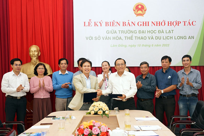 (Lâm Đồng online) – Tại Đà Lạt, vào chiều ngày 10/6/2022, Sở Văn hóa Thể thao và Du lịch tỉnh Long An và Trường Đại học Đà Lạt chính thức ký ghi nhớ hợp tác với sự chủ trì của ông Nguyễn Anh Dũng – Giám đốc Sở Văn hóa Thể thao và Du lịch tỉnh Long An và PGS.TS. Nguyễn Tất Thắng – Phó Hiệu trưởng Trường Đại học Đà Lạt.