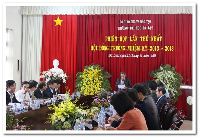 Sáng ngày 21 tháng 11 năm 2015, tại phòng họp 203 nhà A11, Hội đồng trường Trường Đại học Đà Lạt đã tổ chức phiên họp lần thứ nhất với 25 thành viên Hội đồng trường, cụ thể như sau: