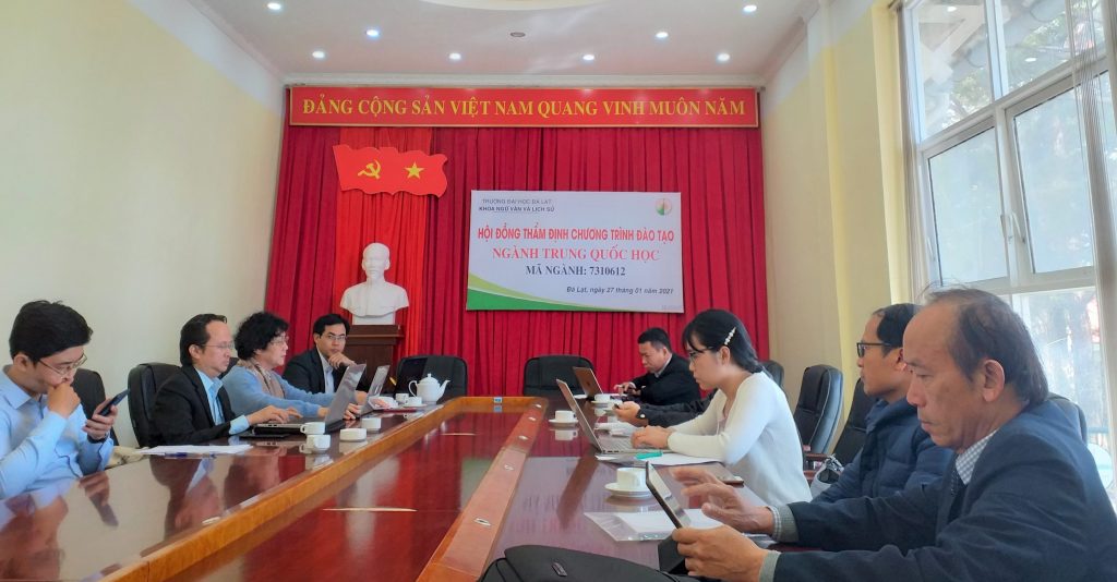 Sáng ngày 27 tháng 01 năm 2021, Hội đồng thẩm định Chương trình đào tạo đã tiến hành thẩm định Chương trình đào tạo và các điều kiện đảm bảo chất lượng thực tế mở ngành đào tạo trình độ đại học ngành Trung Quốc học tại nhà A18 – Trường Đại học Đà Lạt.