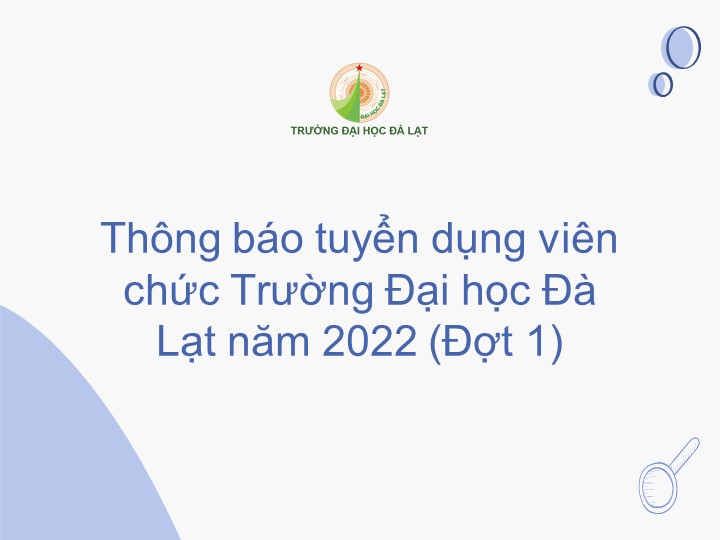 Thông báo tuyển dụng viên chức Trường Đại học Đà Lạt năm 2022 (Đợt 1) Tuyển dụng - Phòng tổ chức hành chính 2022-07-222022-07-28 1097 Loading… Taking too long? Reload document | Open in new tab Download Loading… Taking too long? Reload document | Open in new tab