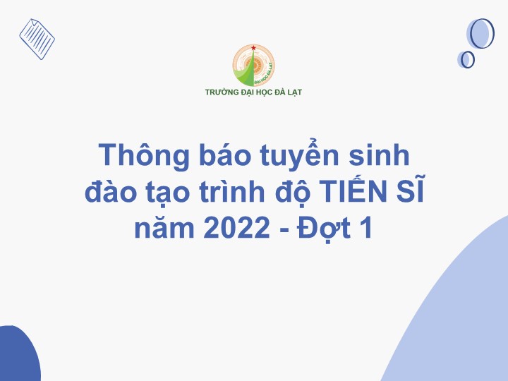 Thông báo số 699/TB-ĐHĐL ngày 05/7/2022 của Trường Đại học Đà Lạt về việc tuyển sinh đào tạo trình độ tiến sĩ năm 2022 – đợt 1