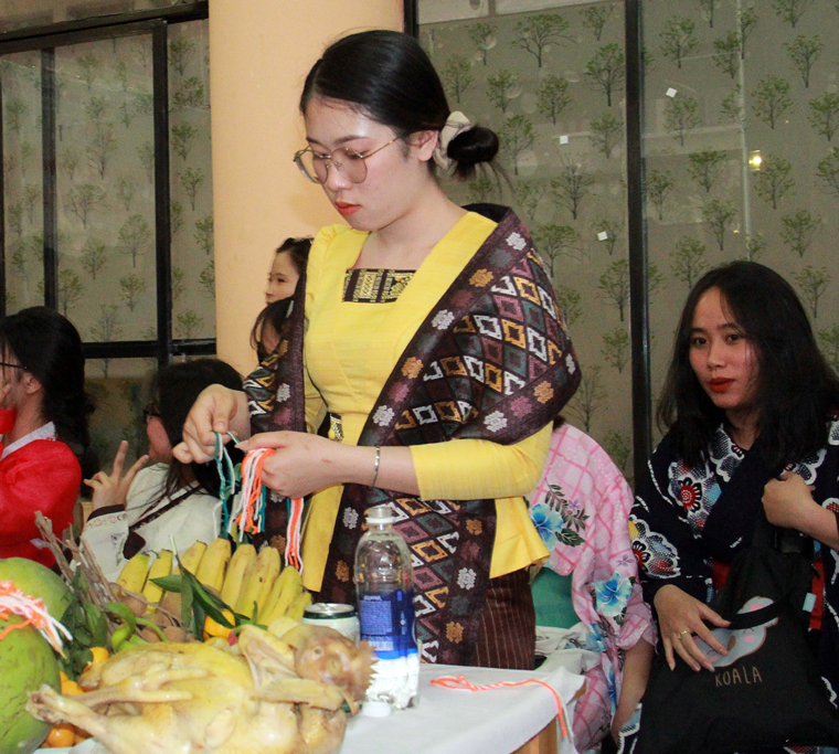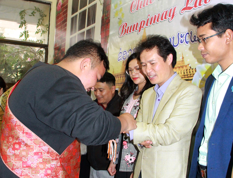 Bạn Mun Thi Xen Chăn Tha Phon (tên tiếng Việt là Lem), sinh viên ngành Môi trường, năm thứ 4, đến từ một tỉnh phía Nam nước Lào đã chủ trì nghi lễ chúc mừng năm mới và lễ buộc chỉ tay. Chăn Tha Phon chia sẻ cảm xúc: “Mặc dù xa nhà không về được dịp Tết, nhưng tụi con được các thầy cô và các anh chị tổ chức lễ Tết này, tụi con coi như là một gia đình mới. Rất vui và hạnh phúc. Thay mặt các bạn con xin được cảm ơn các thầy cô, các bạn nhiều”.