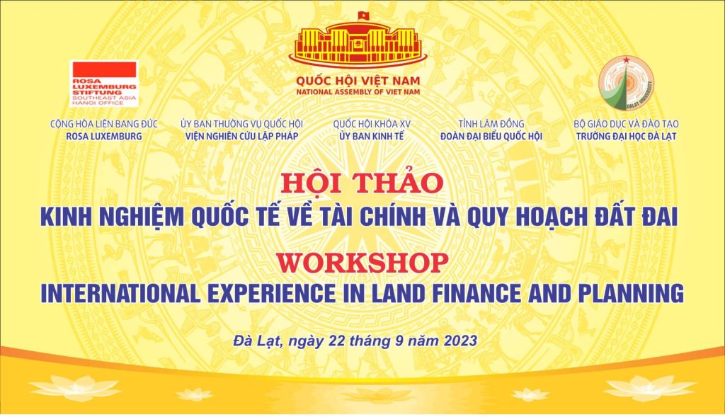 Ngày 22/9/2023, tại Hội trường Tỉnh ủy tỉnh Lâm Đồng, Hội thảo “Kinh nghiệm quốc tế về tài chính và quy hoạch đất đai” được Viện Nghiên cứu lập pháp, Ủy ban Kinh tế của Quốc hội, Đoàn đại biểu Quốc hội tỉnh Lâm Đồng, Trường Đại học Đà Lạt và Quỹ Rosa Luxemburg – Cộng hòa Liên bang Đức phối hợp tổ chức.