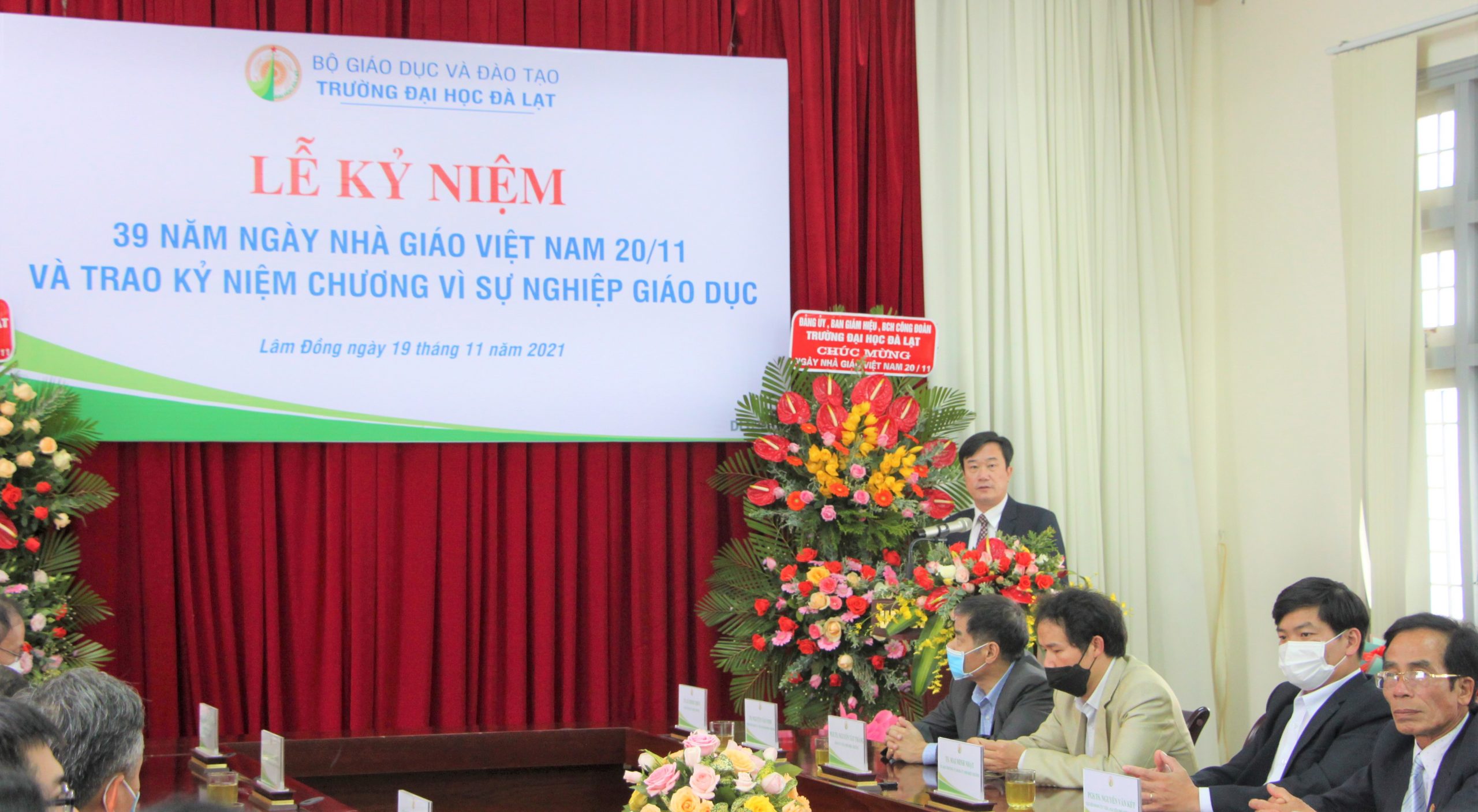 Chiều ngày 19/11/2021, Trường Đại học Đà Lạt đã long trọng tổ chức Lễ kỷ niệm 39 năm Ngày Nhà giáo Việt Nam (20/11/1982 – 20/11/2021) và trao tặng Kỷ niệm chương “Vì sự nghiệp giáo dục” của Bộ trưởng Bộ Giáo dục và Đào tạo cho các viên chức, người lao động của Trường.