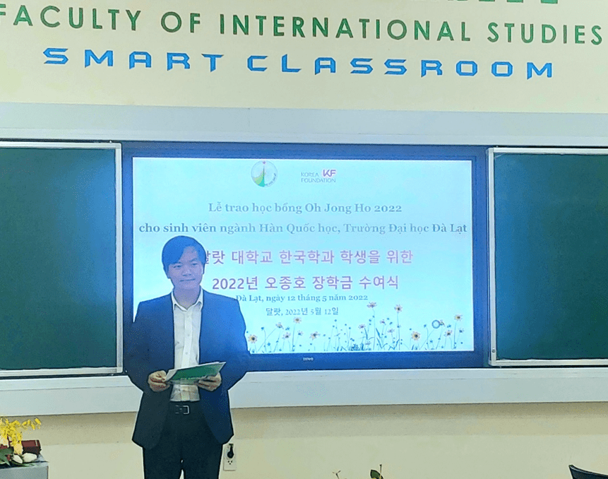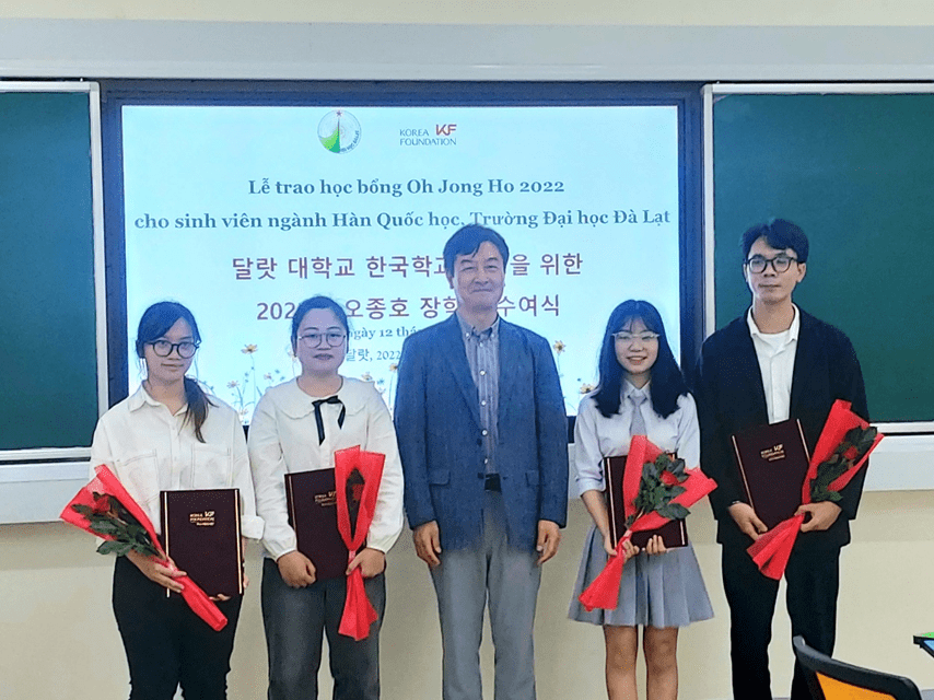 Cố Giáo sư Oh Jong Ho bắt đầu giảng dạy tại Trường Đại học Đà Lạt vào năm 2007, đã góp phần không nhỏ vào việc xây dựng hệ thống giảng dạy chuyên ngành Hàn Quốc học cho sinh viên và sự phát triển chuyên ngành Hàn Quốc học tại trường Đại học Đà Lạt. Theo tâm nguyện của cố Giáo sư, với mong muốn giúp đỡ và khuyến khích sinh viên, năm nay Văn phòng Korea Foundation tại Việt Nam thay mặt gia đình Cố Giáo sư đến trao 04 suất học bổng cho sinh viên chuyên ngành Hàn Quốc học, trị giá 250USD/suất.
