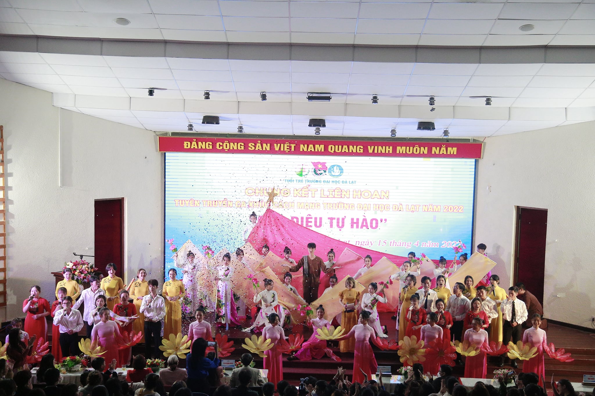 Tối 15/4, Đoàn TNCS Hồ Chí Minh – Hội Sinh viên Trường Đại học Đà Lạt tổ chức Liên hoan Tuyên truyền ca khúc cách mạng năm 2022 với chủ đề “Giai điệu tự hào”. Chương trình nhằm chào mừng 47 năm ngày giải phóng hoàn toàn miền Nam, thống nhất đất nước (30/4/1975 – 30/4/2022).