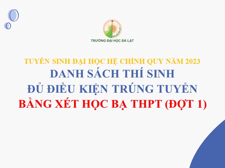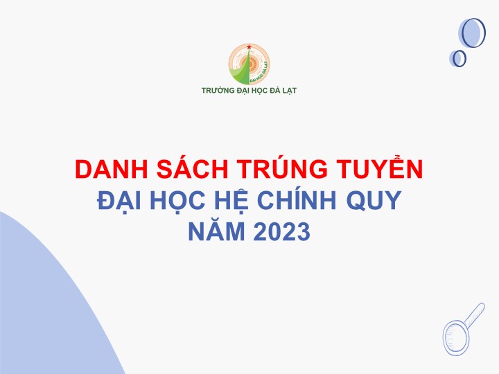Thí sinh có thể tra cứu kết quả tại Hệ thống tuyển sinh của Bộ; Trường Đại học Đà Lạt đã thông báo trúng tuyển và thời gian nhập học trực tiếp cho thí sinh qua tin nhắn SMS theo số điện thoại đã đăng ký.