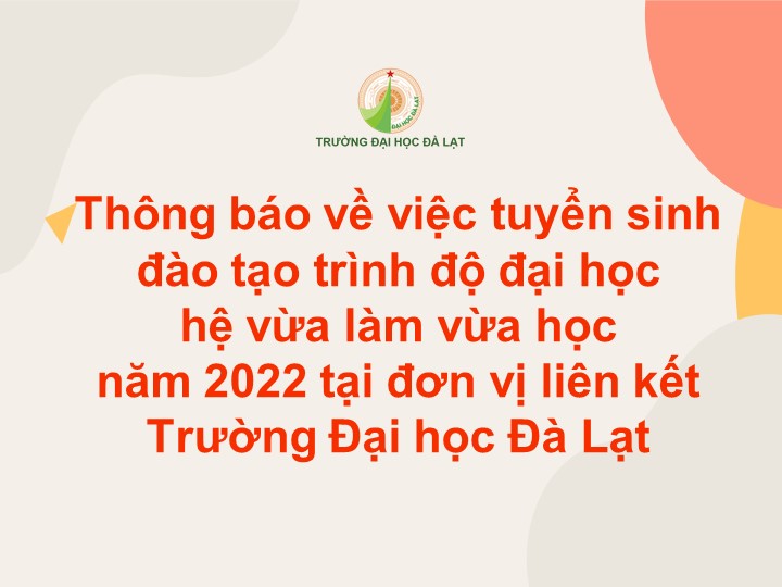 Thông báo về việc tuyển sinh đào tạo trình độ đại học hệ vừa làm vừa học năm 2022 tại đơn vị liên kết Trường Đại học Đà Lạt